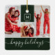 Modern Monogram Photo Collage Lycklig Helgdag Grön Julgransprydnad Keramik