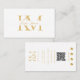 A beautiful white and gold monogram initials design and your QR Code. This elegant marketing business card is ideal for all types of professions. A simple and professional way to introduce your business. Customize the social media icons in this design to suit your business needs. Personalize your details to create your own unique monogrammed business card.