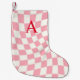 Retro psychedelic modern, kontrollerad pastellkontroll rosa och vita checkar julstrumpor med personlig monogram