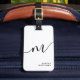 Modern Monogram-skriptkalligrafi svart vit Bagagebricka