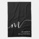 Modern Monogram-skriptkalligrafi svart vit Kökshandduk