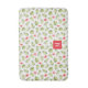 Monogrammat, vitt badmatt med ett rosa monogram på en söt grönt, botaniskt tropiskt handflatan lämnar mönster och exotiska blommor från rosa. Matchande duschgardiner finns.