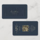 Modern Monogram Pharmacy Elegant Blue Guld affärskort med QR- kod