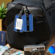 Modern Monogrammed Namn, första blåa Mönster Bagagebricka