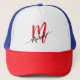 Modern truckerkeps för monogrammad personlig. Ändra det ursprungliga och namn. Lämna de små fyrkanterna i textrutan namn så att du får en blomning i slutet av namn.