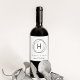 Modern, slående och elegant vin-märkning är ett perfekt sätt att anpassa dina bröllopsfavoriter i vin. Chicens svarta och vita design har ditt första monogram som ramas av en abstrakt runt gräns. Anpassa med ditt efternamn, bröllop datum och vin.