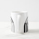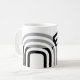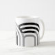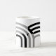 En modern kaffekonstruktion mugg med neutralt vit och svart fyrkantig mönster-bakgrund. Visar en vit mönster som kan ändras genom att ändra den ursprungliga texten.