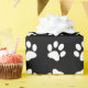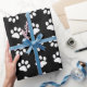 Mönster visar silhuetter av vit katt tassar på svart bakgrund. Den här contemporaryn lägger mönster till en underbar, modern beröring till en födelsedag, jul eller annan helgdag!