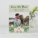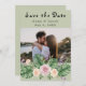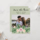 Modern monstera löv och blommigt-strandsebjudan med personlig foto. Teckensnitt, text, färg och design inslag är alla helt anpassade genom att klicka på "personalisera" och sedan "redigera med designera verktyg"