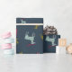 Fylld med polkaudlar och dockor och adorerad med helgdag, modern renar som är bunden över en marin blå bakgrund. Det finns även märkre för koordinering av presentkort och menyfliksområdet.