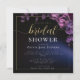 Ro, orkidéer och eukalyptus löv, som är handdragen i färg-pennan och som är digitalt lagrade med lila, ger en modern, sofistikerad elegant än i chic inbjudningskort för möhippan. Den svarta och mörk blått bakgrunden med antydningar om lila och ljus belyser himlar vid midnatt. Elegantens kalligrafi, i guld nyans, gör att snyggten blir svart och lilans inbjudan blir ännu mer elegant.