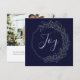 Det här Julhälsningar kortet har en modern gouache-julkrans med löv och bär och "Joy" i kalligrafiskript på framsidan och din favoritfamilj bild och Holiday Greetings på baksidan. Ett modernt julhälsningskort i elegant i mörk blått och moody färg.