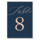 modern Mörk blått och Ro Guld Bröllop Bordsnummer