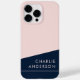 Modern minimal mörk blått och rosa iphone case med ditt anpassade namn anpassat till högerna. Typsnitt och färg kan anpassas med verktyg.
