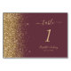 Det moderna bordsnumret bröllop i elegantens lämnat kant har en guld faux-utformning från glitter. Anpassadet kombinerar handskrift, rityta och kursivt typsnitt i blek guld-färgad på en mörks burgundbakgrund.