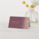 Den här eleganten har det moderna bröllop bord-reserverade platskortet en ro guld faux glitter utmed kant utefter en mörk på en burgundbakgrund. Kortets framsida ger plats åt gästernas namn och bordsnummer i form av rektanglar av ro-färgad. Ord "bord" visas i handskriftsskriptet ro-färgad med dekortecken före och efter. Anpassa kortets baksida med namn på briden och trippen i handskriftsskriptet ro och bröllop-datumet nedan i sans serif-teckensnitt.