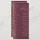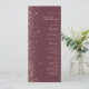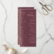 Det moderna bröllopsprogrammets lämnat kant i eleganten har ett utkast från ro guld faux glitter. Anpassadet kombinerar handskrift, rityta och kursivt typsnitt med ro rosa på en mörk-burgundbakgrund.