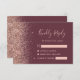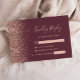 Det moderna kanten i elegantens lämnar djurutrymme i bröllop OSA har ett ro faux glitter gräns i guld. Anpassadet kombinerar handskrift, rityta och kursivt typsnitt på blek ro med rosa på en mörk-burgundbakgrund. Baksidan har en matchande mörk-burgundi och ro guld-design.