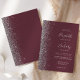 Modern Mörk Burgundy Silver Glitter Kant Bröllop Inbjudningar