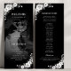 Informera dina gäster om bröllopsprogrammet med det här programkortet för elegant, med bilder från utfällda mörkar, blommigt för svart och vit elegant och anpassningsbar. Lägg enkelt till dina egna uppgifter genom att klicka på alternativet "anpassa".