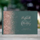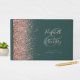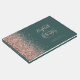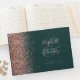 I gästen bok i elegant bröllop finns ett lämnat gräns i Faux guld glitter i i ro på mörk grönt grund. Anpassa enkelt ro rosa-texten med namnen på bruden och trippen i den visuella handskriftsbilden över ett stort skärpeband. Lägg till ytterligare text som du väljer framifrån och rygg.