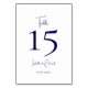 Det här eleganta designade Bordsnumret-kortet har en marin bakgrund och vit text på ena sidan, med vit bakgrund och marint skript på den andra sidan, skapar det en verkligt modern design, perfekt för bröllop stil. Anpassa detaljerna, skapar det vara en minnesvärd keepsaké för gästerna och se till att det framträder som ett omhuldat memorandum.