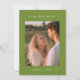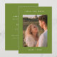 Modern Mörk Olivgrön Förlovningsfoto Bröllop Spara Datum. Ett minimalistiskt och elegant, mörkt olivgrönt bröllop spara datum-kort, designat med modern typografi. Anpassa med ett favoritförlovningsfoto eller allmänt parfoto, era namn och kommande bröllopsinformation på baksidan, inklusive bröllopsdatum, plats och bröllopswebbplats om det behövs.