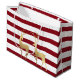 Mörk maronrött vågrät rand på vitt med två silhuetter från guld hjort gör det här till ett modernt chic val av presentsäck för vilken helgdag tillfälle som helst