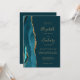 Den här elegantens lämnat kant har en modern bröllopsinbjudan med en tårvattensagat gräns som trimmas med faux guld glitter. Anpassadet kombinerar handskrift, rityta och kursivt typsnitt med guld-färgad på mörkens bakgrund. Den omvända sidan ger plats för bröllop-information på en solid teal-bakgrund, tillsammans med en QR-kodgäst som kan söka på din webbplats och OSA, vilket sparar kostnaderna för utskrift och utskick av separat OSA kort.