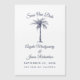 Be dina gäster att spara din bröllopsdag med denna enkla eleganta design med modernt typsnitt, mörkblå text och ett konstnärligt palmtre. Anpassa det med din bröllopsdatum, namn och plats.