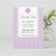 Trendigt Modernt Morockanskt Mönster Spara Datum i Violett Lila. Om färgschemat inte är vad du ville ha, vänligen meddela mig så återskapar jag det åt dig, men vänligen kontakta mig innan du lägger en beställning. E-post paula@labellarue.com Lycka till med bröllopsplaneringen! Se till att välja din favoritpapperssort för att få den tryckt på