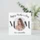 Personifiera detta snygga moderna Mors Dag-kort med dina foton och namn. Enkelt men stilrent svart och vitt Mors Dag-kort med elegant scripttypografi som innehåller ett personligt foto i en tunn svart cirkel som bokstaven O i Mamma på framsidan och en 4-foto collage med ett snyggt hjärta i mitten på baksidan.