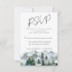 Enkel och modern bröllopsvarskort med modern kalligrafi och ett vattenfärglandskap med berg eller vildmark.