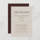 Dela viktig information med stil med detta Moderna Mousse Bruna Bröllopsdetaljer Inneslutande Kort, designat med ren typografi och en varm neutral ton. Baksidan har en praktisk QR-kod som länkar gästerna till ditt reserverade hotellblock eller boendesida. Slick, enkel och funktionell, detta kort är perfekt för par som vill hålla gästerna informerade samtidigt som de behåller en sammanhängande, minimalistisk estetik.