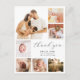 Denna moderna tidlösa födelsetekst och flerfotos tack-kort är perfekt för alla som vill tacka sina gäster för deras presenter, kärlek och stöd på deras baby shower och presentera sin nya familjemedlem. Den eleganta designen har en minimalistisk stil och har en fotokollage med sju anpassningsbara foton, enkel elegant typografi för din information och ett chic handskrivet manus för en "tack"-rubrik. På baksidan finns ett anpassningsbart tackmeddelande med era namn. Använd knappen "anpassa" för att ersätta foton och redigera text.