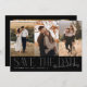 Elegant and stylish save the date card featuring a modern serif font that says "save the date" with your signature in a hand written style font. There are 3 photos on the front and one on the back. The background is black.