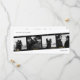 This modern yet elegant save the date card features a filmstrip photo frame with four photos and classic typography on the front. There is plenty of space on the back of the card for all the important details plus a modern calligraphy script "Save The Date" greeting. Background, greeting, and text colors are customizable. *If your photo is color and you would like it to be black and white, simply use the photo filters in the editor tool.