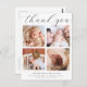 Denna enkla och chic fyrfotos postkortsmall för college nybebis-annonsering / tackkort efter bebis-besök har en skarp svart-vit modern elegant look. Den har fyra av dina favoritfoton av bebisen, en "tack" -rubrik i elegant skrivstil kalligrafi och ditt barns namn och statistik i klassisk teckensnitt. Baksidan har ditt anpassade tackmeddelande och ett litet bohohjärta. Använd de intuitiva designverktygen, dina favoritfoton och din inspiration och gör detta minimalistiska, eleganta flerbilder collage tackkort unikt!