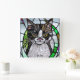 Kattdjur tema ansikte Square Wall Clock för världens kattälskare. "Le Chatta" kan tas bort eller ändras till ditt namn efter behov.