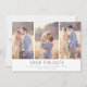Enkel och snyggt tre fotosamlingskonstruktioner i bröllop spara datum. tre av dina favoritfoton på förlovningen med det här fotokollage-bröllop spara datum-kortet.