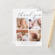 Denna enkla och chic fyrfotos postkortsmall för college-nyfödd bebis / tacksamhetskort för baby shower har en skarp svart-vit modern elegant look. Den visar fyra av dina favoritfoton av bebisen, en "tack" -rubrik i elegant skrivstil kalligrafi och bebisens namn och statistik i klassisk teckensnitt. Baksidan visar ditt anpassade tackmeddelande och ett litet boho-hjärta. Använd de intuitiva designverktygen, dina favoritfoton och din inspiration och gör detta minimalistiska, eleganta flerbilder collage tackkort unikt för dig!