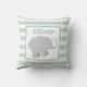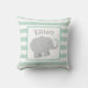 En söt grå elefant med mintgröna hjärtaccent sitter mot en ren vit mitt på denna moderna barnkammarens kudde. Myntfärgade och vita ränder ramar in designen, med barnets personliga namnmonogram som visas ovanför elefanten. En charmig accent för en babys barnkammare, småbarnsrum eller lekrum. Anpassa namnet för att göra det till en perfekt present.