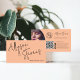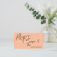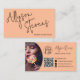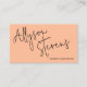 Ett modernt och djärvt enkelt affärskort för konstnärer och hårstilar med överdimensionerad namn längst fram i ett handskrivet stil-teckensnitt och foto, fyrkantig kod och social-media längst bak på persikan. Alla färg är redigerbara.