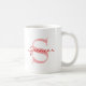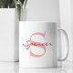 Trendig Classic mugg med ett stort monogram initialt och skript namn på båda sidor i ljusröd (rosa) och röd. Ändra namn & initialer med hjälp av den angivna mallen. Se "Om den här produkten" på sidan för mer information.