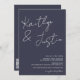 Modern namn-skript kalligrafi navy blue bröllop inbjudningar