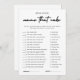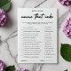 Tittar du lägga till roligt och upphetsning i möhippan? Titta bara på det moderna Namn som är Möhippans jakkort. Det här engagerande spelet är perfekten för att skapa minnesvärda stunder med vänner och familj. Namn att Cake är ett populärt spel för möhippa där spelare tävling mot klockan matchar ledtrådar till olika typer av kakor. Det är inte bara en slå på möhippor, utan också på möhippor, babyduschar och barnens födelsedagsfester. Vare sig du är en tårtkonnoisör eller bara kärlek är en söt utmaning, så kommer det här spelet att behålla dig att hålla dig i timmar. Det moderna Möhippan "Kaka Game Card" i Namn har en elegant svart och vit utformning som ger dig lite elegans till evenemanget. Det minimalistiska stil ser till att det passar in i vilket möhippa som helst. Med det här anpassadet kan du anpassa det med parets namn, bröllop-datum eller något annat speciellt meddelande. Det är ett tänkvärt och unikt sätt att fira de snart kommande nygifta. Samla dina kära, ta en bit tårta och låt roligten börja med det moderna Namn-Möhippans jakkort. Få redot att skratta, tävla och skapa varaktiga minnen. Missa inte det här måste ha ett tillägg till dina möhippor.