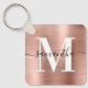 Skapa din egen lilla personlig namn och den dekorativa, rundade hörnnyckelkedjan för henne. Personligens monogram med contemporaryns elegant namnteckning stil kalligrafi och en minimalistisk modern stil-inledning. Den digitala bildbakgrunden har en övertoningsfolie faux ro guld och rosa som skrivs ut som ett foto.