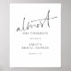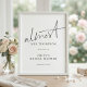 Modern Nästan Fru Välkommen till Bröllopsfest. Finns tillgängligt digitalt och tryckt. Ordet Nästan är i ett modernt icke-redigerbart skript. Resten av texten kan du enkelt anpassa.