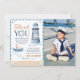 Modern Nautical Blue Boy 1st födelsedagsfoto Tacksamhetskort