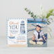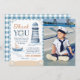 Modern Nautical Blue Boy 1st födelsedagsfoto Tack Kort